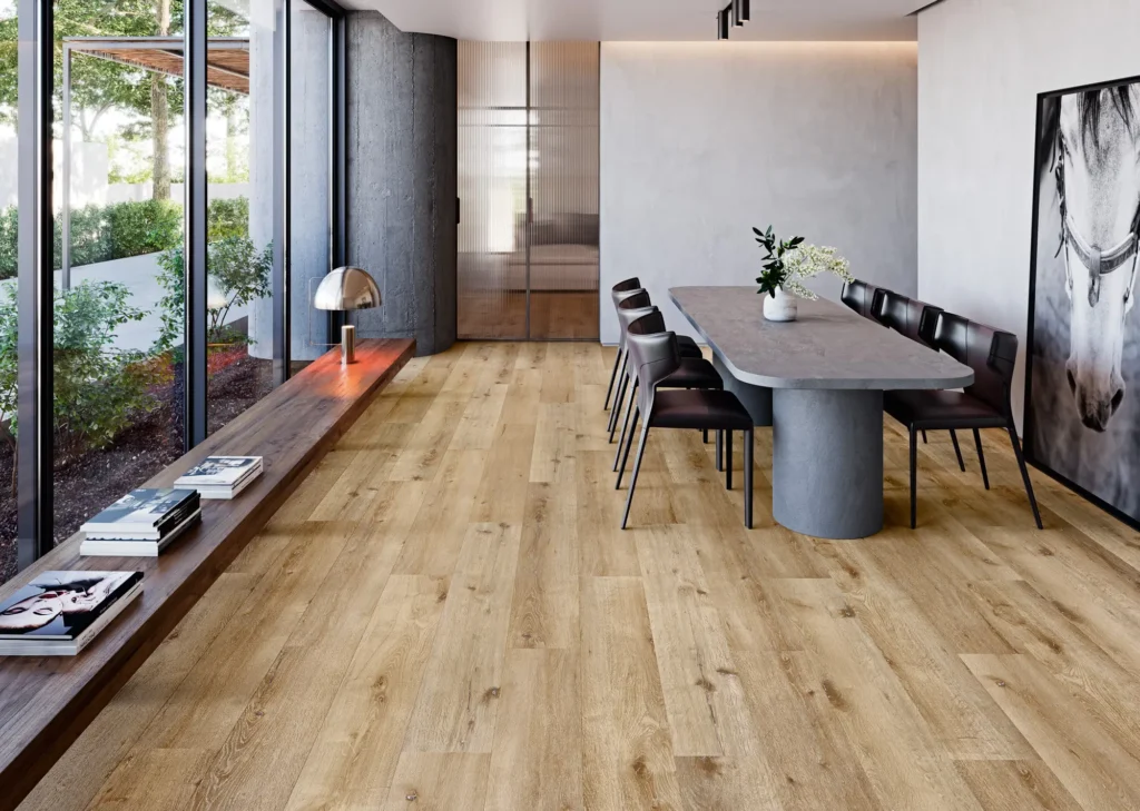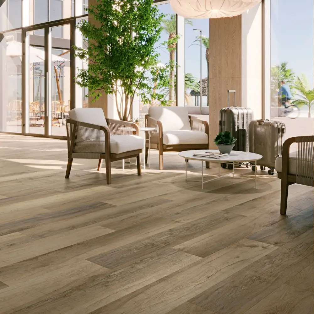 Por la alta densidad de su núcleo, el SPC presenta una resistencia al impacto superior a la de los pavimentos vinílicos tradicionales, lo que lo convierte en la mejor opción para zonas de alto tránsito. Y gracias a su composición mineral, el SPC es un material que se puede instalar cerca de las ventanas sin riesgo de que este se expanda debido a los cambios de temperatura.