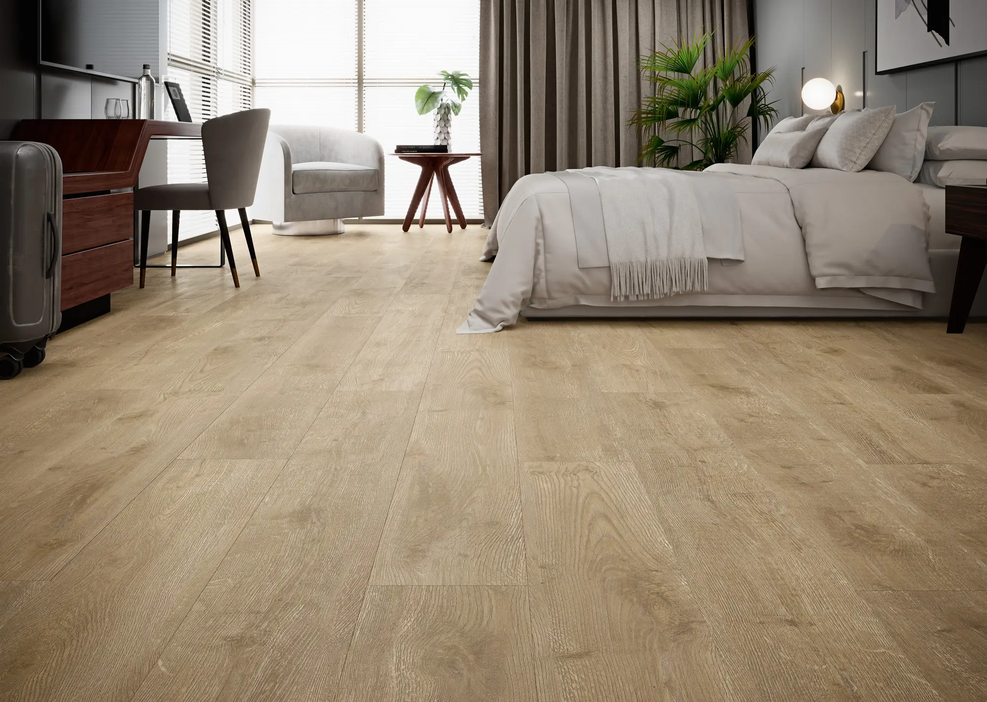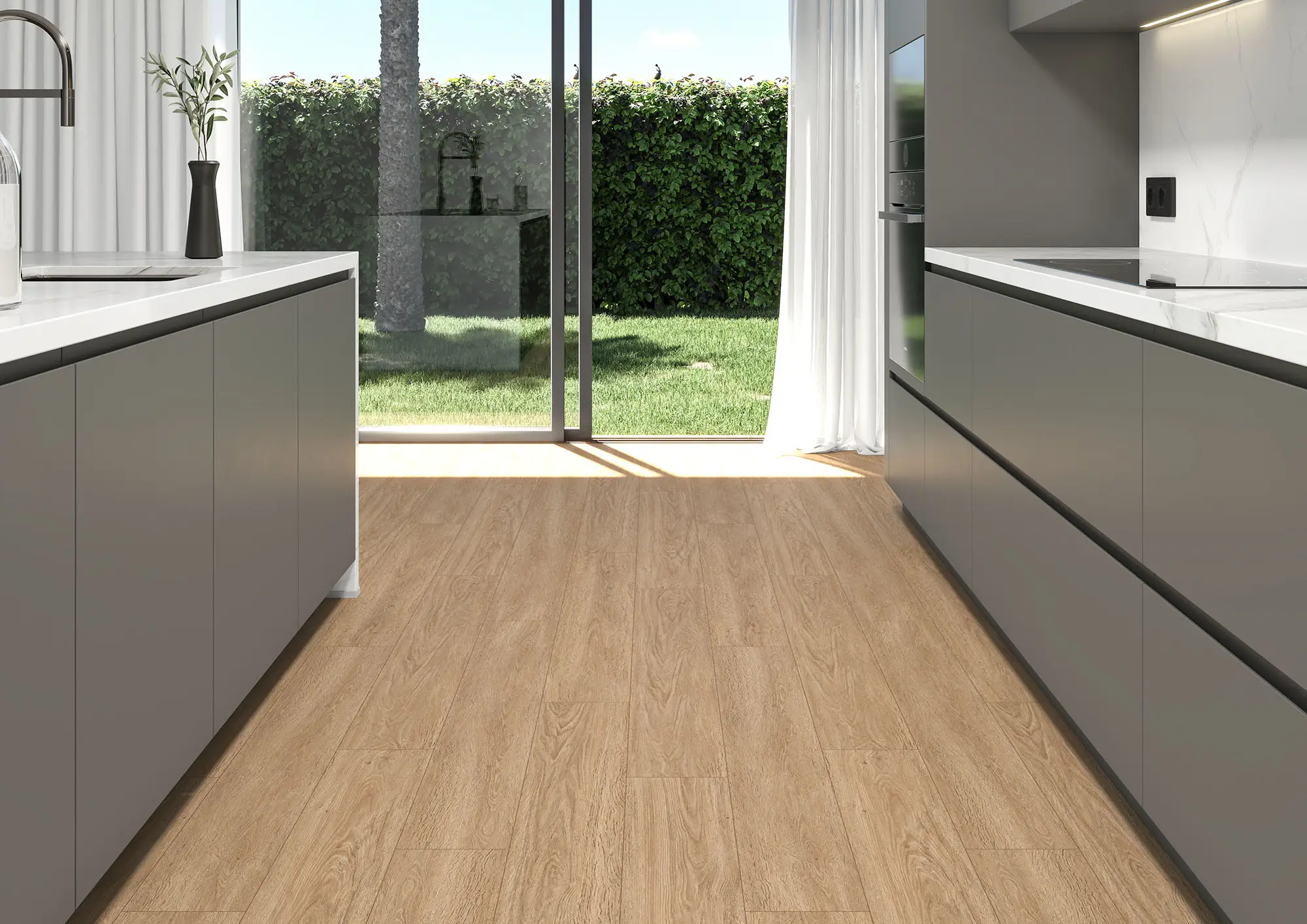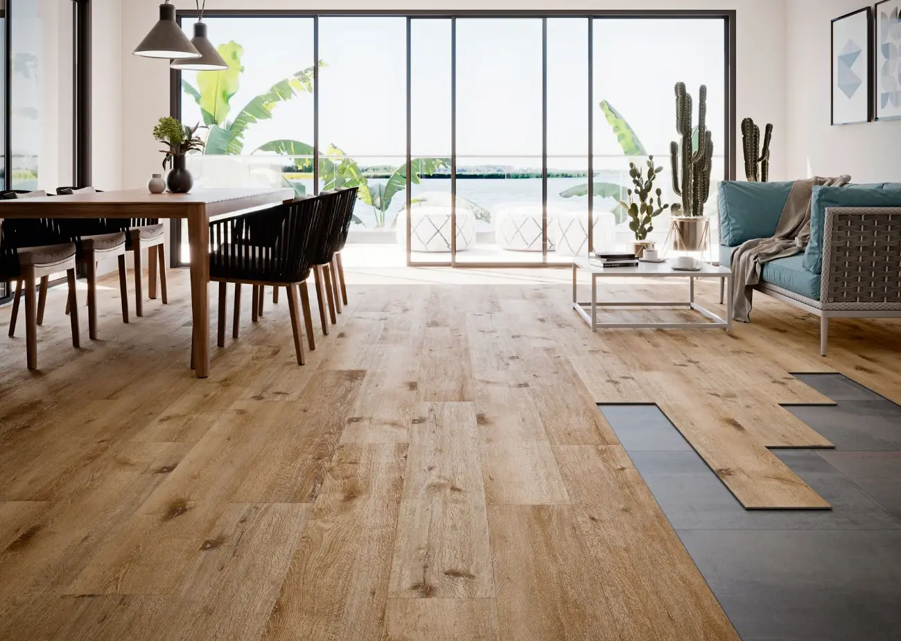 Por la alta densidad de su núcleo, el SPC presenta una resistencia al impacto superior a la de los pavimentos vinílicos tradicionales, lo que lo convierte en la mejor opción para zonas de alto tránsito. Y gracias a su composición mineral, el SPC es un material que se puede instalar cerca de las ventanas sin riesgo de que este se expanda debido a los cambios de temperatura.